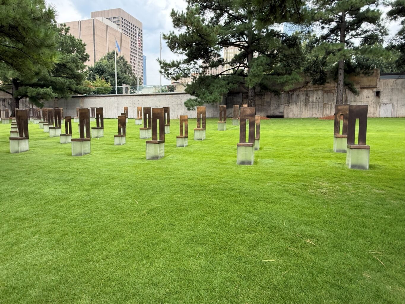 This morning began with some happy news for our Eagles fans — their team had beaten the Cowboys the night before, which set the tone for the day! After breakfast, we visited the site of the 1995 Oklahoma City bombing, the Alfred P. Murrah Federal Building Memorial. The reflecting pool, monoliths marked 9:01 and 9:03, and 168 empty chairs representing each life lost (including 19 smaller chairs for the children) were deeply moving. It’s hard to believe it has been 30 years since that tragic day.